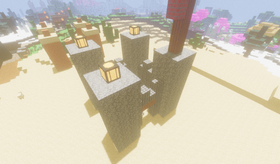 Each piece in the BlockForge collection is a chunk of the world — your own 32×64×32 canvas to build on. 8 mega-chunks span 2×2 areas at biome intersections. Every piece runs the same game, sees the same world, and discovers other players' builds.